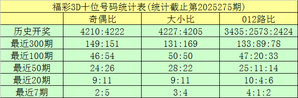 开奖回顾:福彩3D第2025275期奖号为:203。奖号形态开出组六,奇偶比开出1:2,012路比为2:0:1,大小比为0:3。